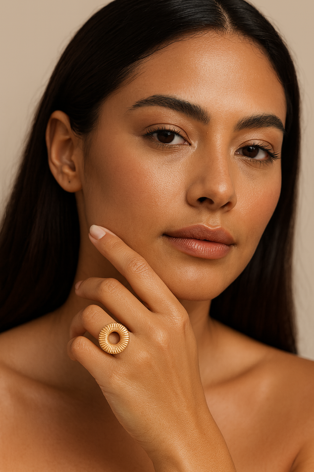 Sortija en forma circular color dorado expande